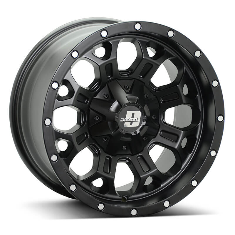 This wheel is the latest design to arrive in the diesel range and is available in two sizes 17x9 and 20x9.5 and also two finishes black matt and machined face black matt with bronze tint. It has maximum dish but also the right offsets to keep within the guards of most 4x4 vehicles.Read more